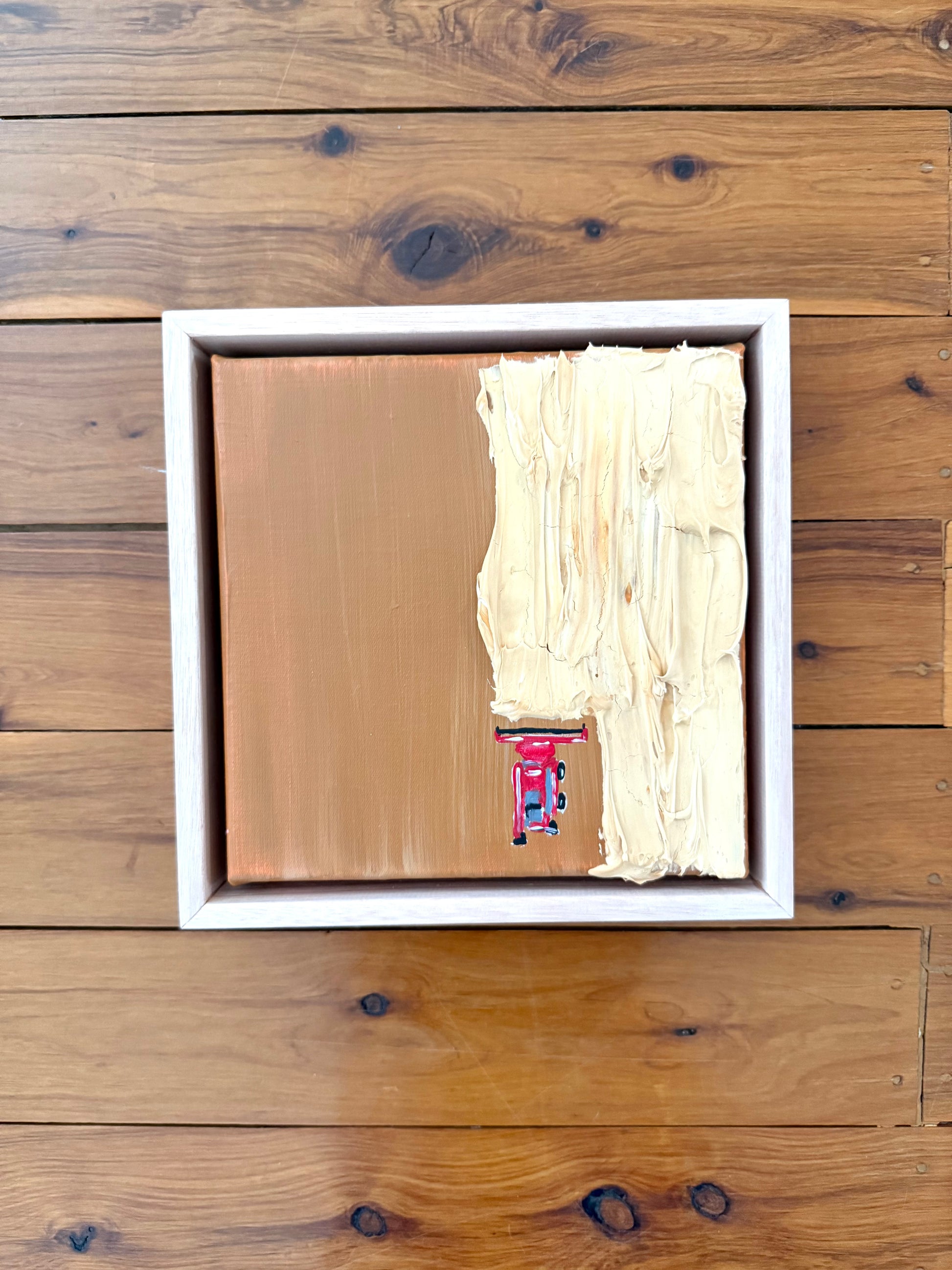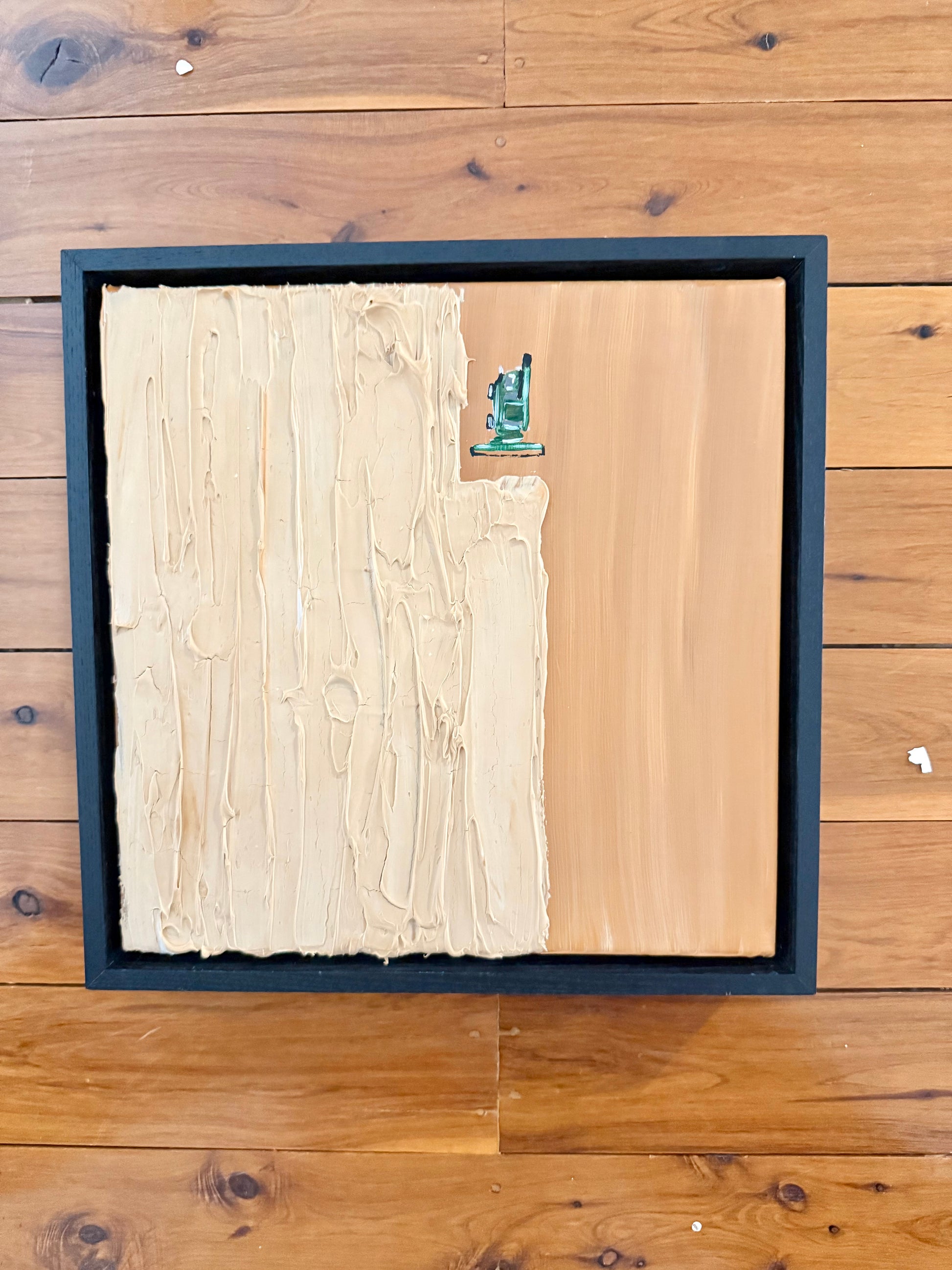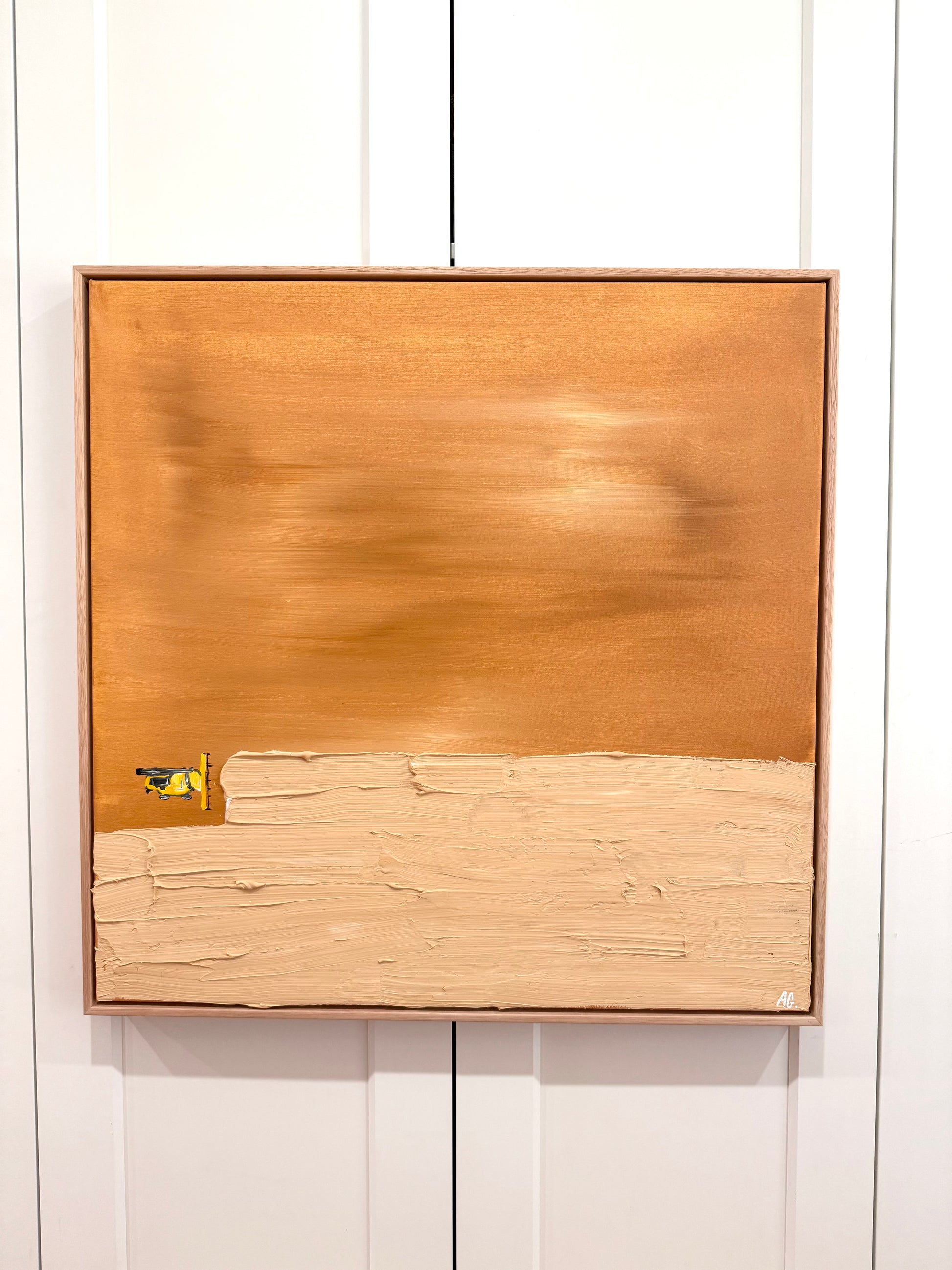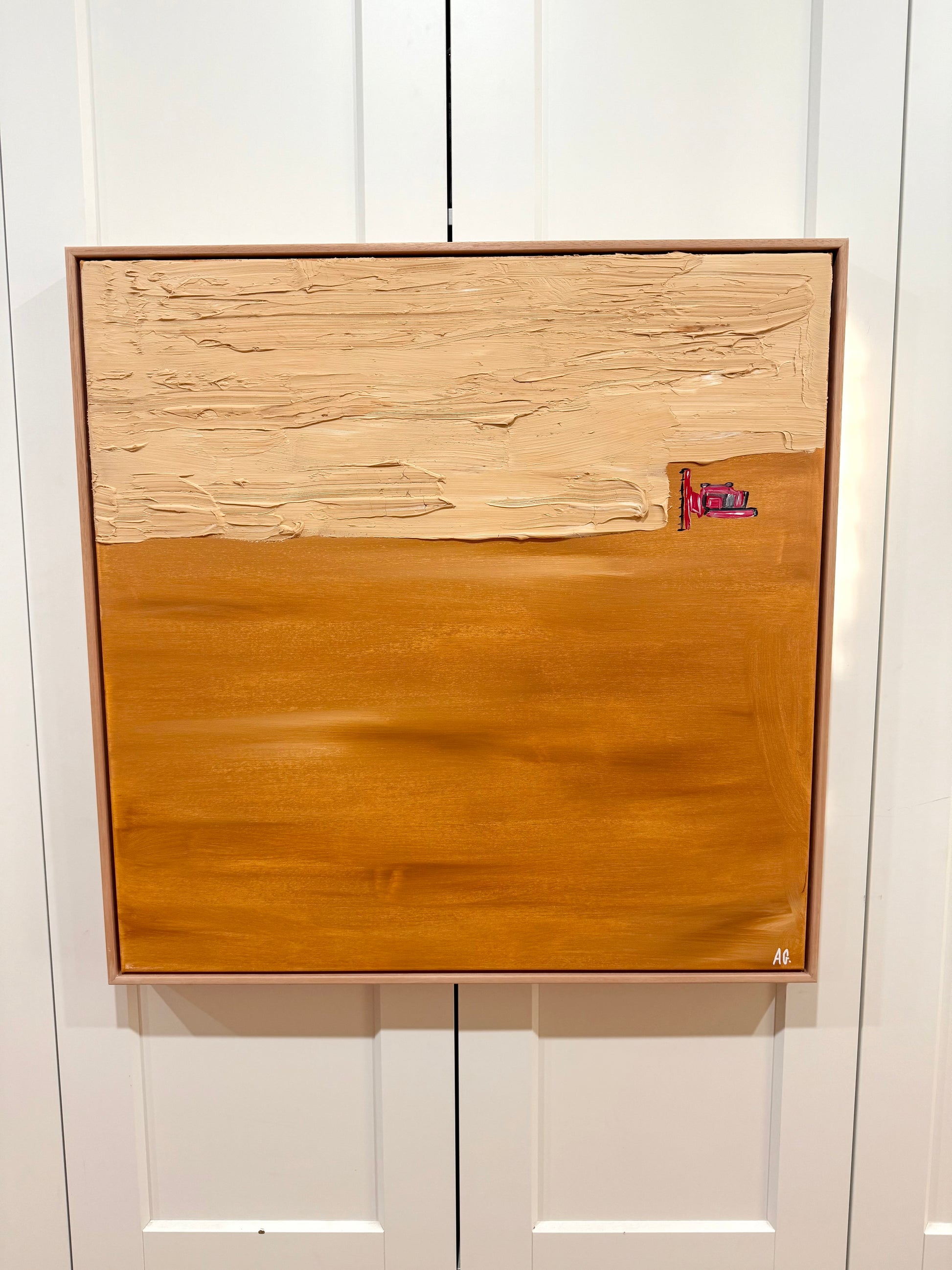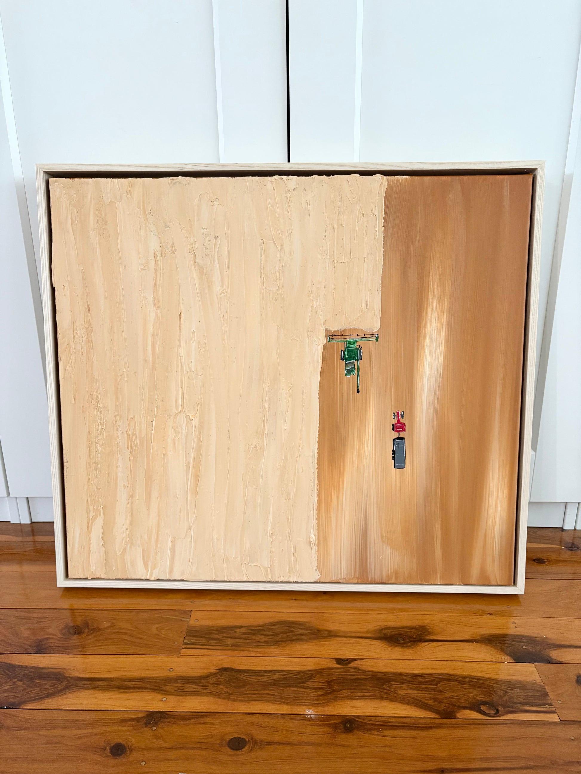 Mixed media on cotton canvas framed in American ash
